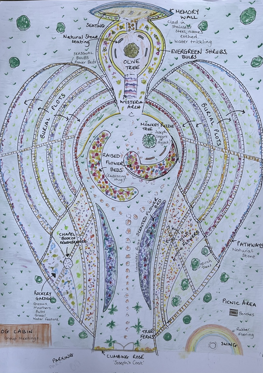 Our charity is raising funds to create a Burial and Memorial Garden to lay Joseph and other Sons and Daughters born through miscarriage to rest. We have created this Angelic Garden plan that has become our concept.