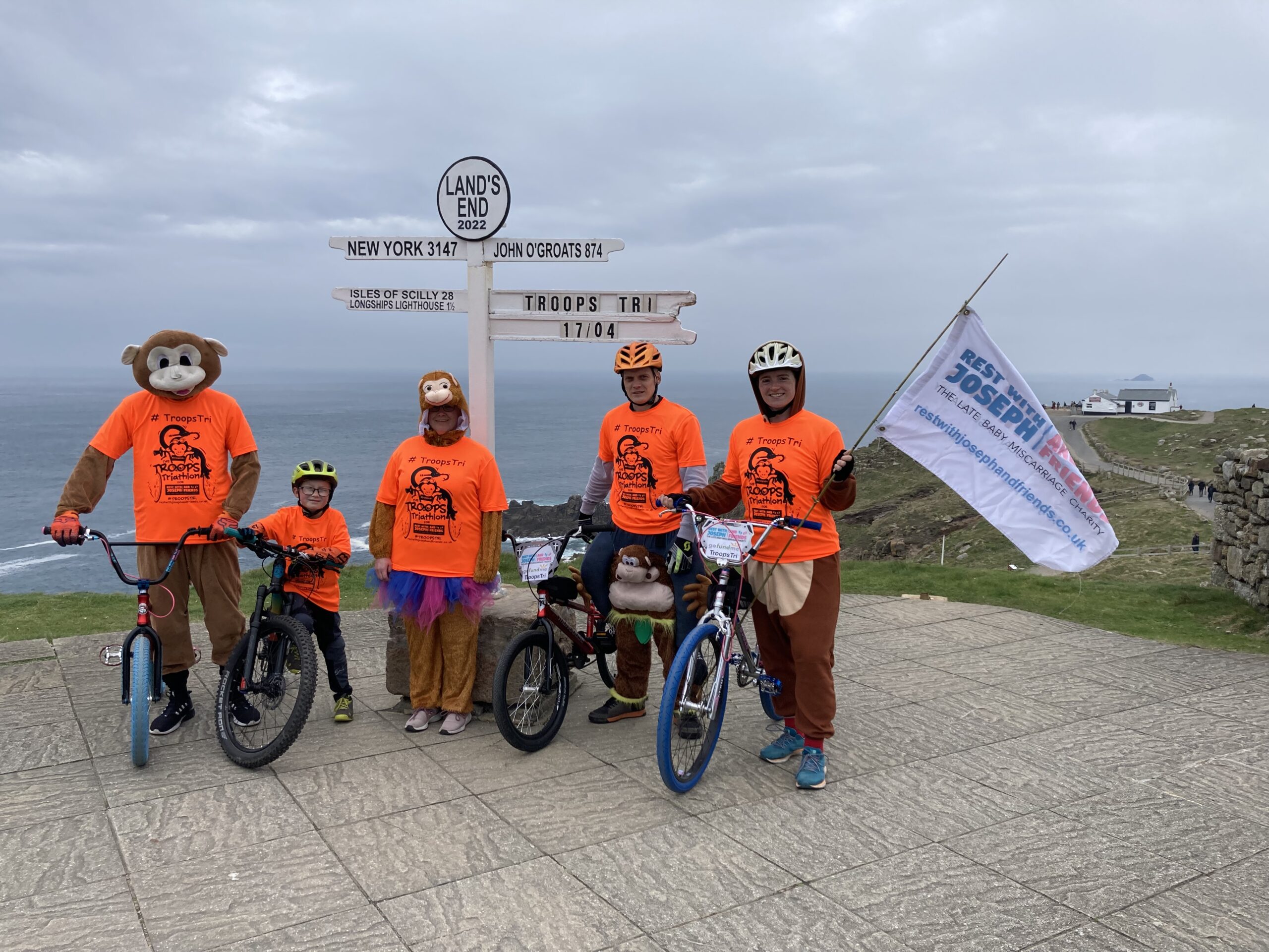 Monkey’s (The Trustee’s) were seen swimming, cycling and walking/wheelchairing this Easter around the roads and towns of Cornwall. All were partaking in a monkey (troop) triathlon raising funds to create a burial and memorial garden for parents that have lost their baby through late miscarriage.